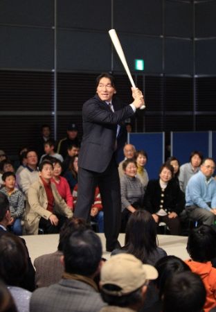 「松井秀喜ホームランカードメンバーズ ふれあいイベント」が催され、ファンからのメッセージが書かれたエンゼルスの旗をプレゼントされました。